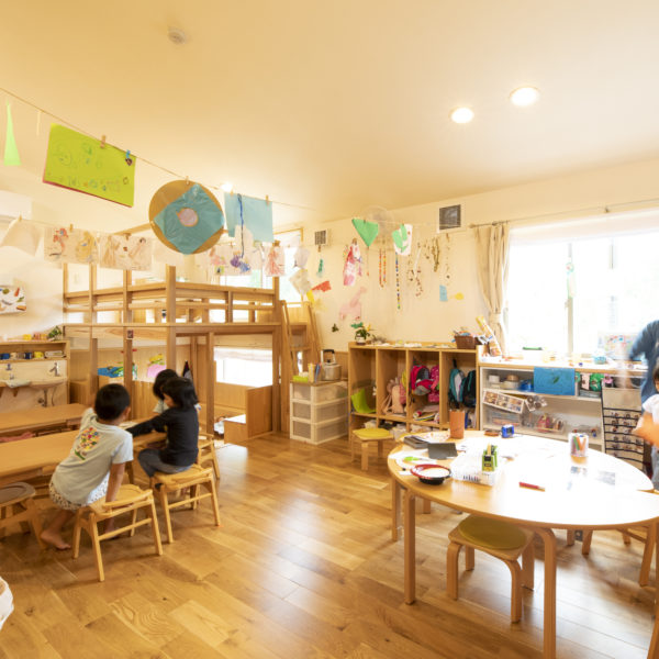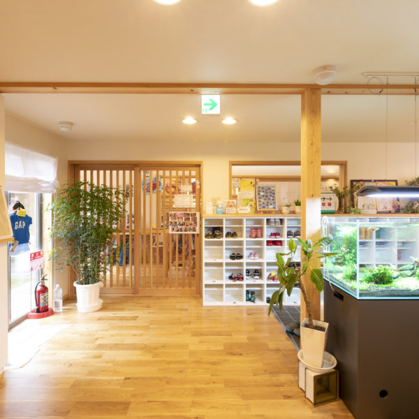 子どもにも先生にも地域の人々にも、我が家のように感じていただけるよう、いつも住宅設計で大切にしている、土間、断熱、障子、回遊性、視線の抜け、広い狭い、明るい暗い、高い低いと二極を作るなどを盛り込みました。